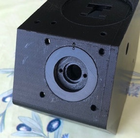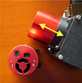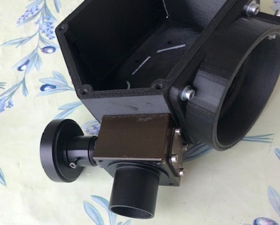 On procède ensuite au montage de l’interface caméra (dans les photos ci-dessous, il est question du modèle de caméra ZWO). On utilise un jeu de vis et écrou M4 pour la fixation :