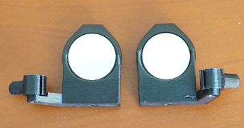 Faites des essais avec les matériaux qui vous conviennent le mieux et avec les paramètres slicer de votre choix aussi. On est ici dans un domaine où l’expérience de chacun et la maîtrise de son propre matériel compte le plus. Noter sur la vue à gauche, l’aménagement de renforts commandés au slicer autour des trous de montage des deux miroirs et du réseau.