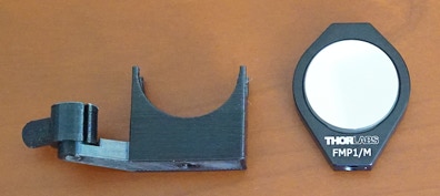 Il est temps maintenant de s’occuper des miroirs M1 et M2. On les disposes dans leurs montures respectives (serrer modérément la vis latérale) :