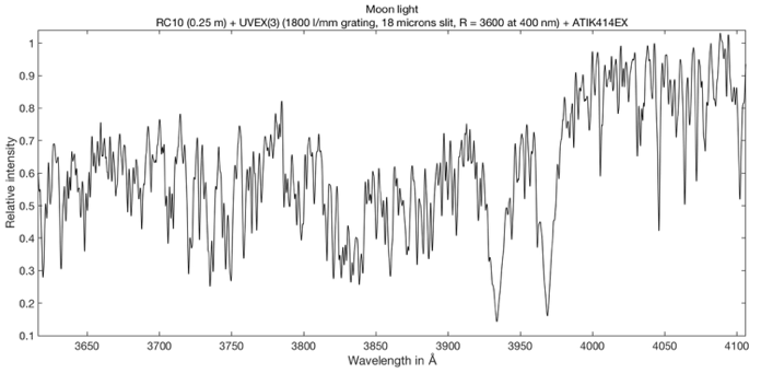 La partie du spectre de la Lune centrée autour des raies H&K du Ca II :