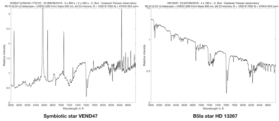 Mais la capacité d’explorer la partie infrarouge du spectre n’est pas oubliée pour autant, comme en témoigne les deux spectres d’étoiles présentés ci-dessus (en quelque sorte UVEX devient alors un IREX !) :