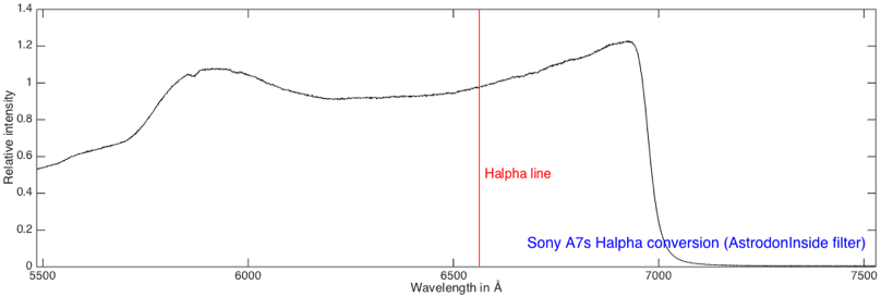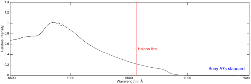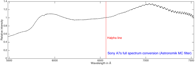 One of the purpose of this page is to show the phenomenon of interference fringes on a modified Sony A7s camera used for spectral high and medium resolution acquisition (click here for going to an general evaluation page of the camera). The modification of the device was conducted by company EosForAstro. It consists of a total unfiltering with the addition of a clear Astronomik MC glass. The goal is to get a camera sensitive in the near infrared part of the spectrum.
