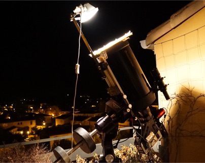 A key step in the acquisition procedure: the realization of the flat-field. Here I use a halogen lamp that illuminates the entrance of the telescope covered by a full pupil diffuser.