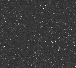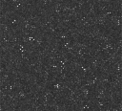 On the left, an exposure in the dark of 5 minutes duration (300 seconds) conducted in Bulb mode (detail). On the center, the sum of 10 elementary 30 seconds frames in the standard shooting mode (30 seconds is the maximum available in this mode). On the right, the comparison of these two images.