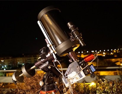For test the spectrograph is a Lhires III model (Shelyak Instruments company). I use an Optometrics diffraction grating of 830 lines/mm specially blazed at 800 nm (reference 3-7880). The telescope is a C9.25 used at f/10.