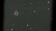 Surprise, la nébuleuse annuaire de la Lyre, comme la plupart des nébuleuses, produit un spectre de raies d'émissions. Il y a pratiquement pas de continuum. Le spectrographe donne alors plusieurs images quasi monochromatiques de l'anneau, là où la nébuleuse émet. Dans la partie droite du spectre, nous avons la raies rouge de l'hydrogène, avec accolée à elle des raies de l'azote. Dans la partie gauche, nous avons une intense raie verte ayant provoquée par l'oxygène.